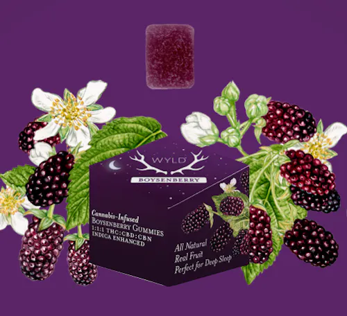 Hit the snooze button. Boysenberry THC:CBD:CBN gummies are perfect for deep sleep. CBD helps the body relax, while CBN can provide a restorative rest for the mind. When combined with THC, Wyld's Boysenberry gummy activates the Entourage Effect to set the landscape for a relaxing, restorative sleep.