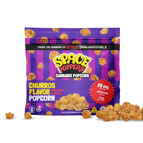Each kernel of Churro Infused Popcorn is coated with warm cinnamon sugar goodness and infused with 1mg of THC, delivering gentle, consistent effects in every bite. With 25 individual popcorn pieces per pack, the total dose comes to 25mg THC, making this an ideal option for consumers who prefer low-dose edibles and precise control over their experience.
